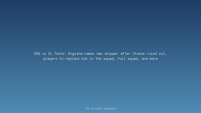 ENG vs SL Tests: England names new skipper after Stokes ruled out, players to replace him in the squad, full squad, and more