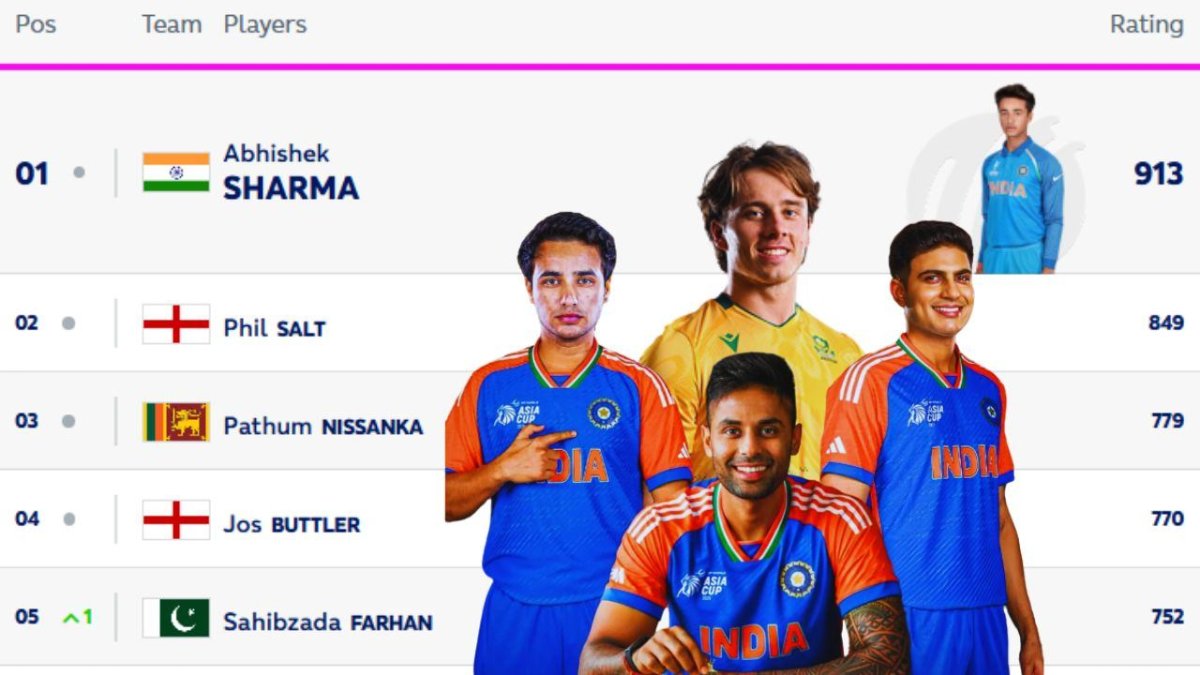 Despite having a bad performance in the first two T20I matches, Indian star batter Abhishek Sharma is still the No.1 T20I batter with a rating of 913 in the ICC Players Rankings. South African batter Dewald Brevis jumps to the 8th spot after having an exceptional performance so far in the series.