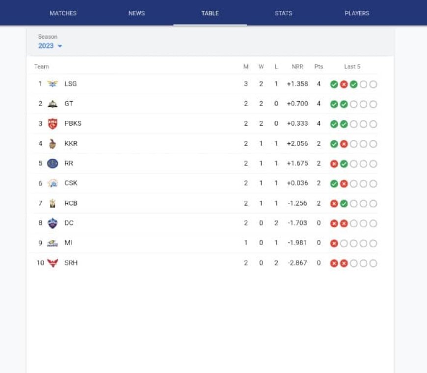 After today's Match, LSG now comes to the 1st spot from 5th in the IPL 2023 Points Table. Lucknow Super Giants have 4 points with two win and 1 loss. LSG now have an excellent net run rate of 1.358, which will help them later in the tournament.
