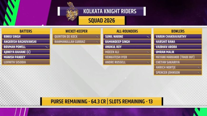 Kolkata Knight Riders had only one trade ahead of the IPL 2026 Auction. They traded young Indian spinner Mayank Markande to the Mumbai Indians in an all-cash deal, which means the Mumbai Indians have no player in exchange.