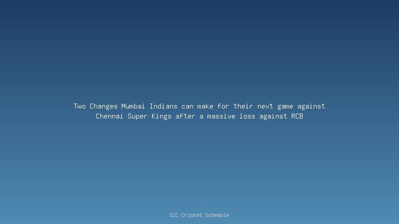 Two Changes Mumbai Indians can make for their next game against Chennai Super Kings after a massive loss against RCB